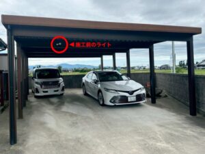 吹田市でカーポートの照明交換工事|暗い駐車場をLEDで防犯対策した事例