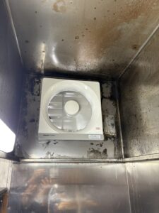 吹田市にお住まいのお客様より、台所の換気扇から異音がして吸い込みが悪いとのご相談をいただきました。長年使用されたことで油汚れが蓄積し、経年劣化によるモーターの不具合が原因でした。